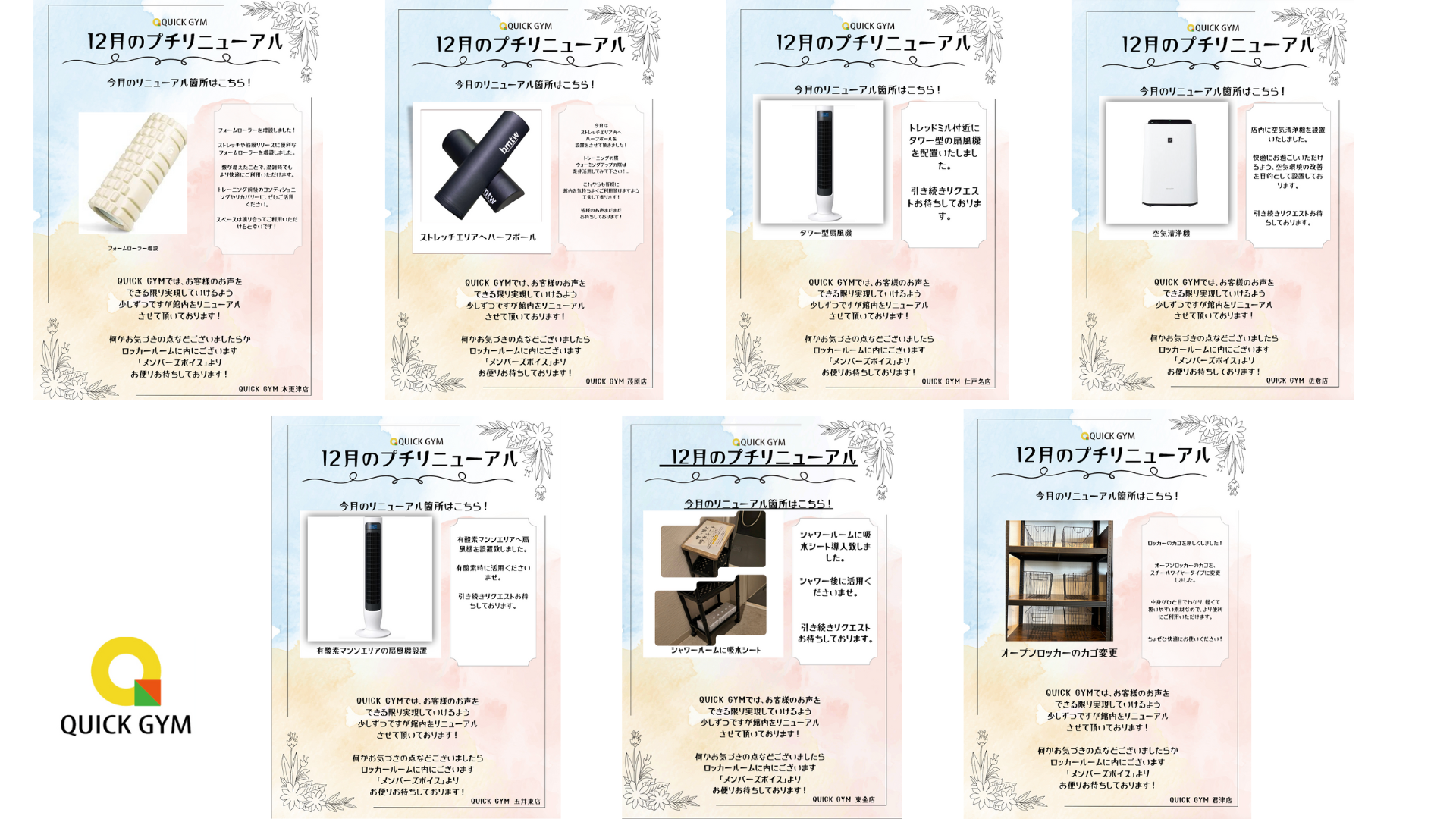 QUICK GYMでは、お客様のご要望をもとに